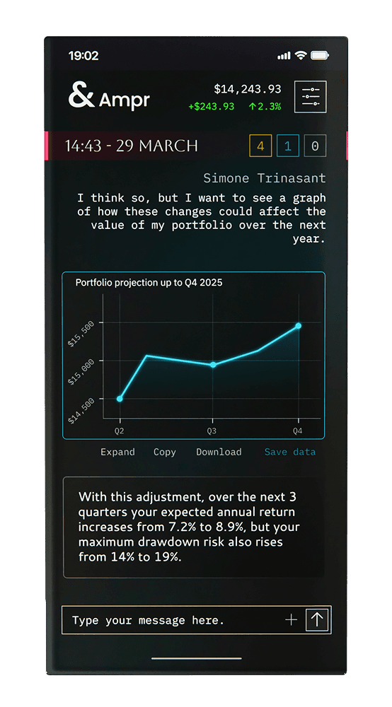 Ampr leverages best in class AI models augmented with a proprietary and continually evolving collection of macroeconomic and financial market insights.